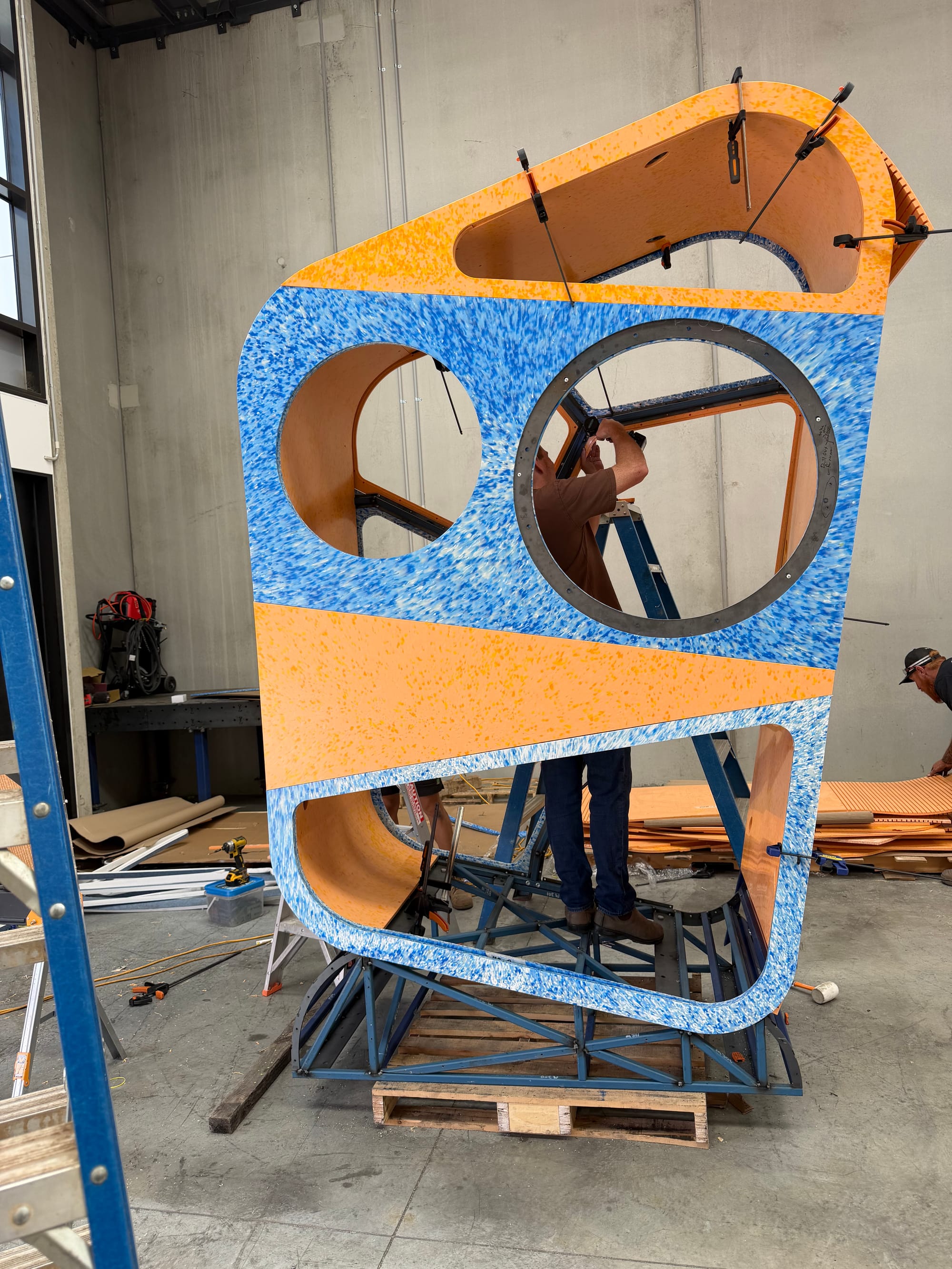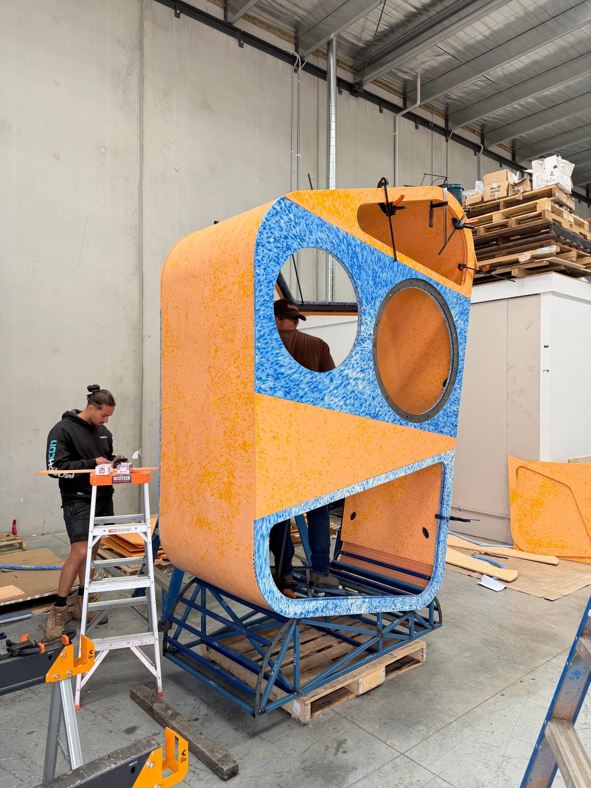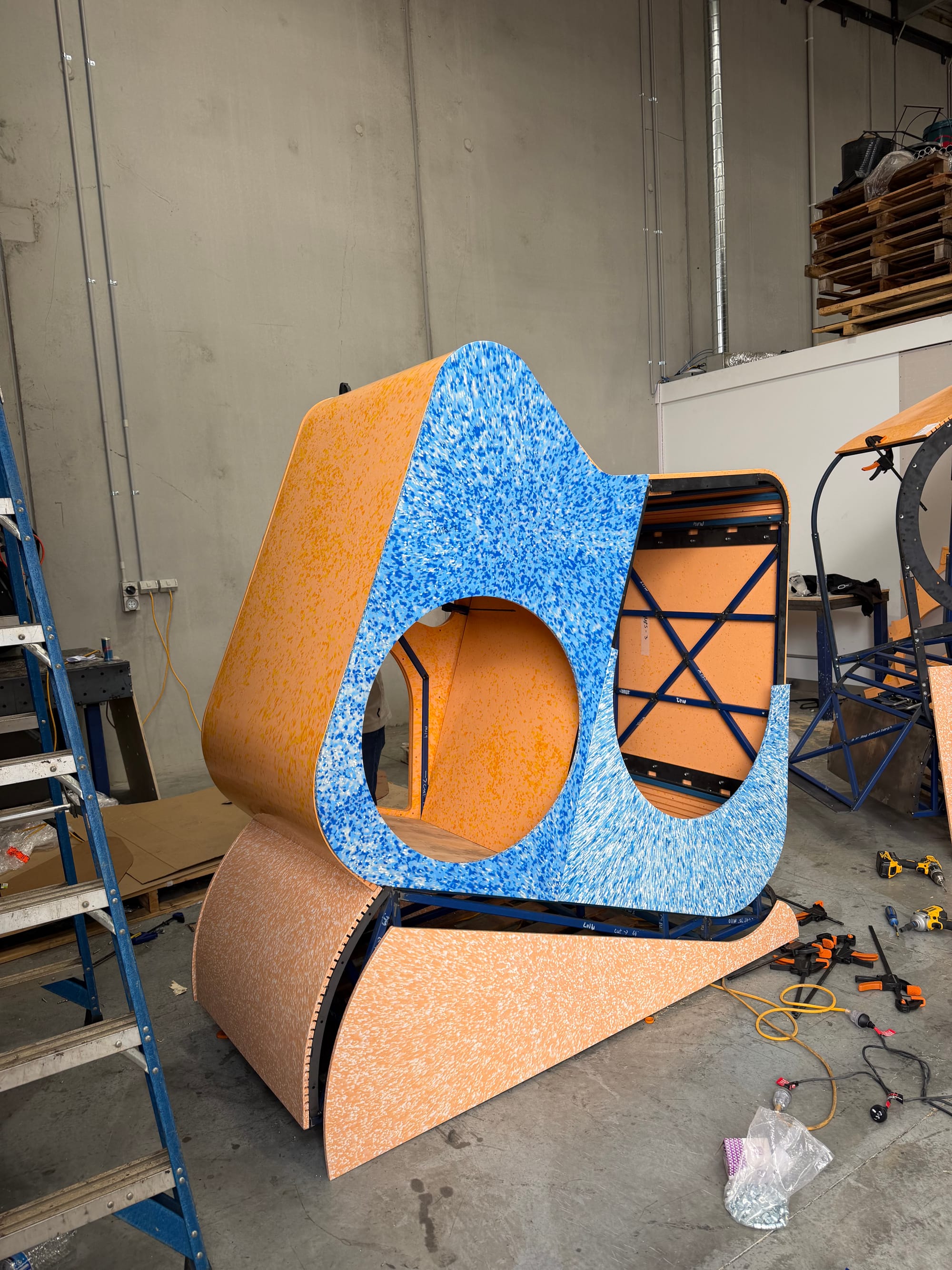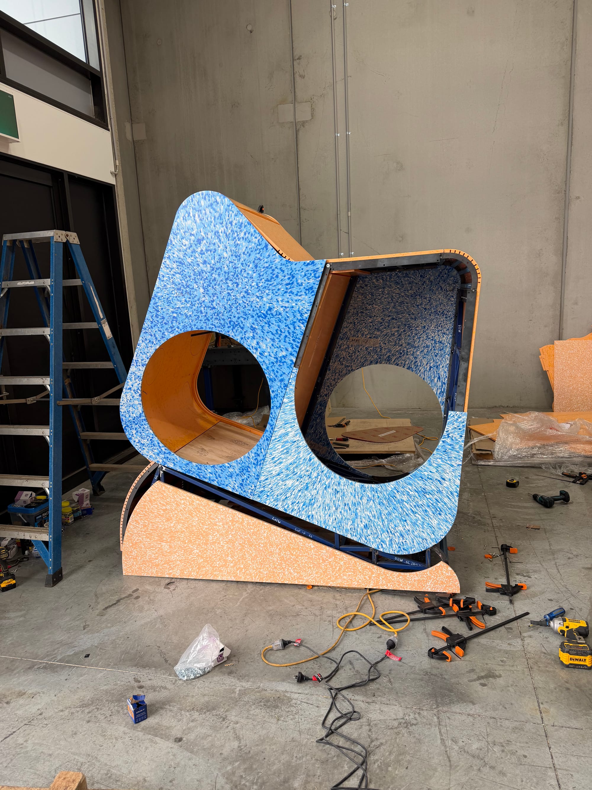 Custom playground installation for Blanc Space, featuring uniquely shaped forms and detailed external cladding, delivering a one-off structure that stands out through its design and finish.