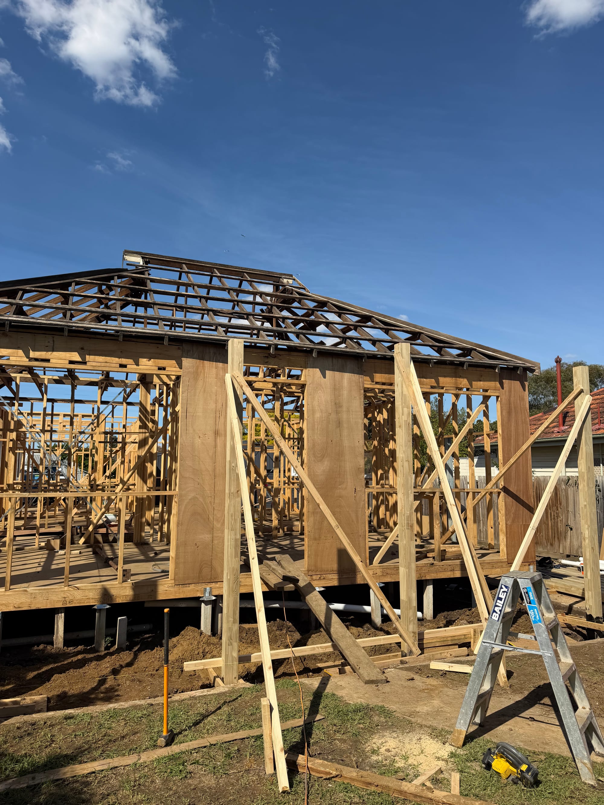 Renovation and extension to an existing single storey dwelling in Preston, including new structural framing and roof construction, with structural loads transferred and integrated into the existing structure.