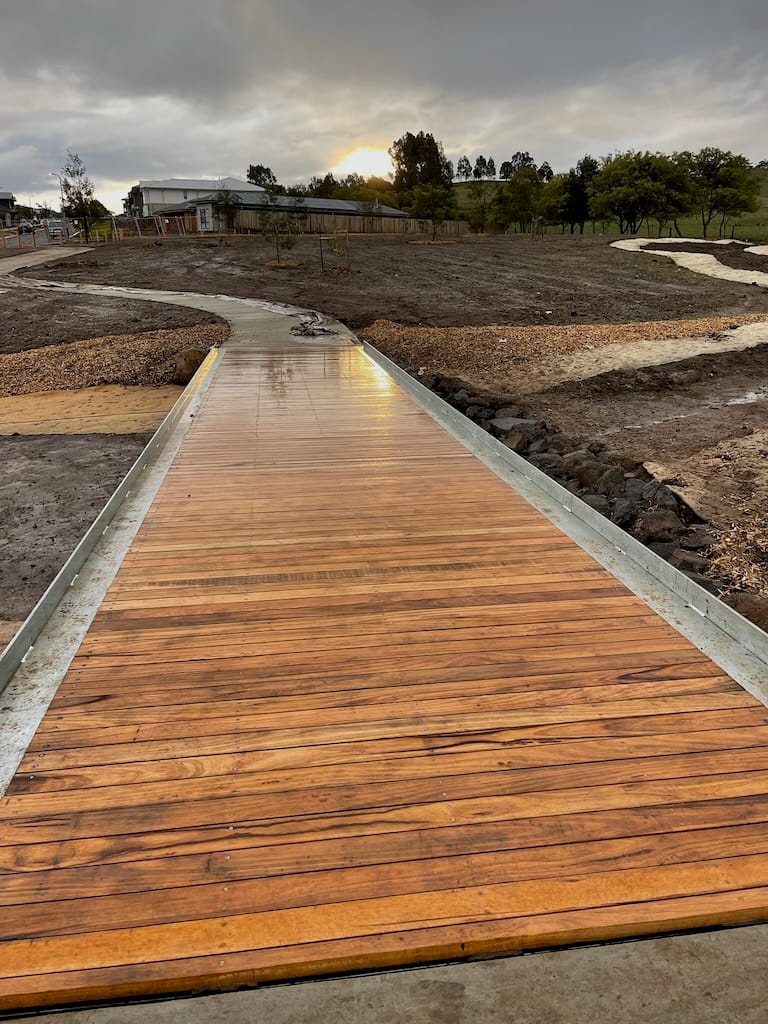 Supply, install, and finishing of custom park seating for new subdivision projects across Melbourne's northern suburbs, including premium timber finishes.