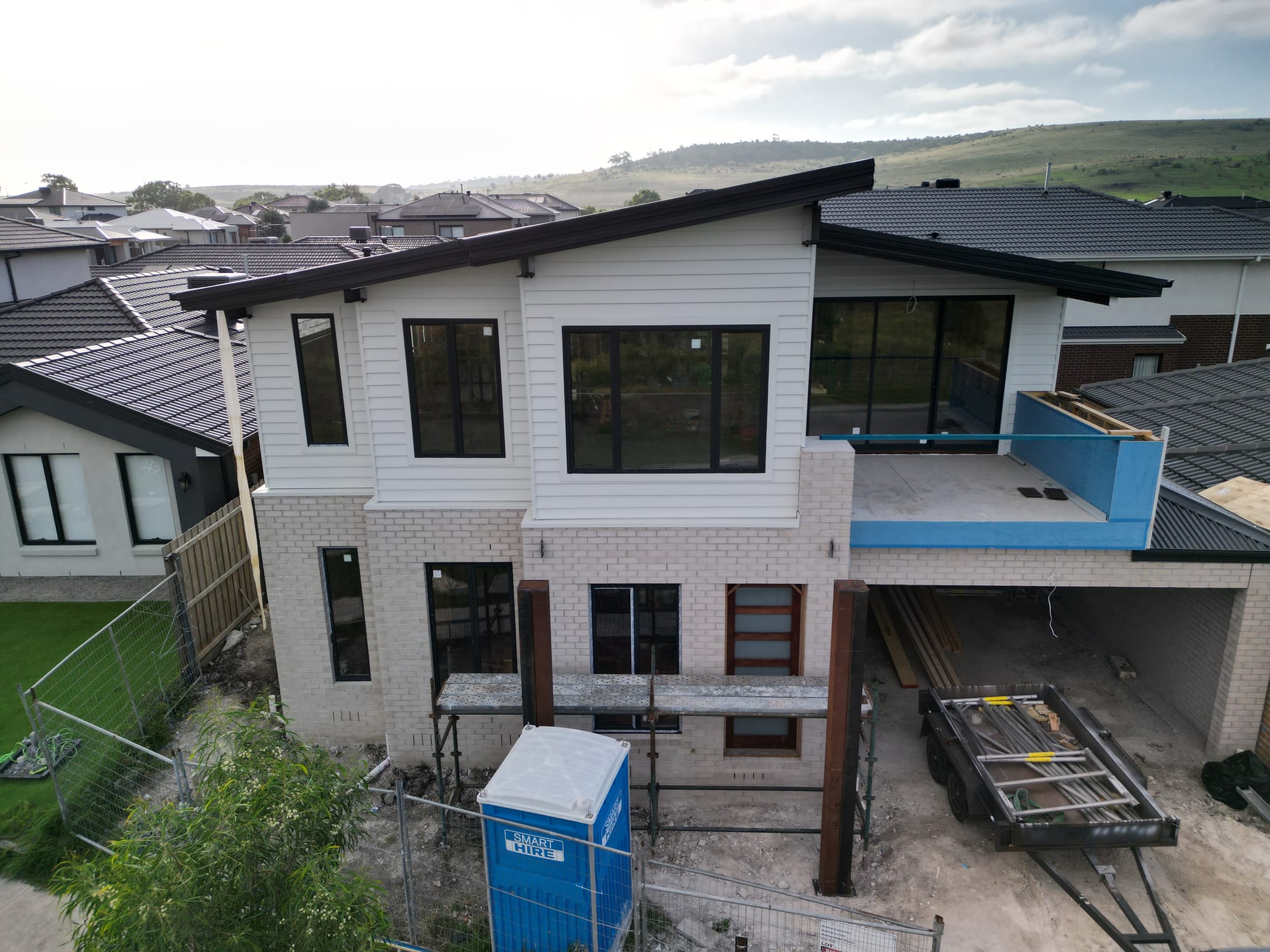 Full weatherboard cladding installation completed in Wollert, including set-out, fixing, and detailing across the entire double storey build.