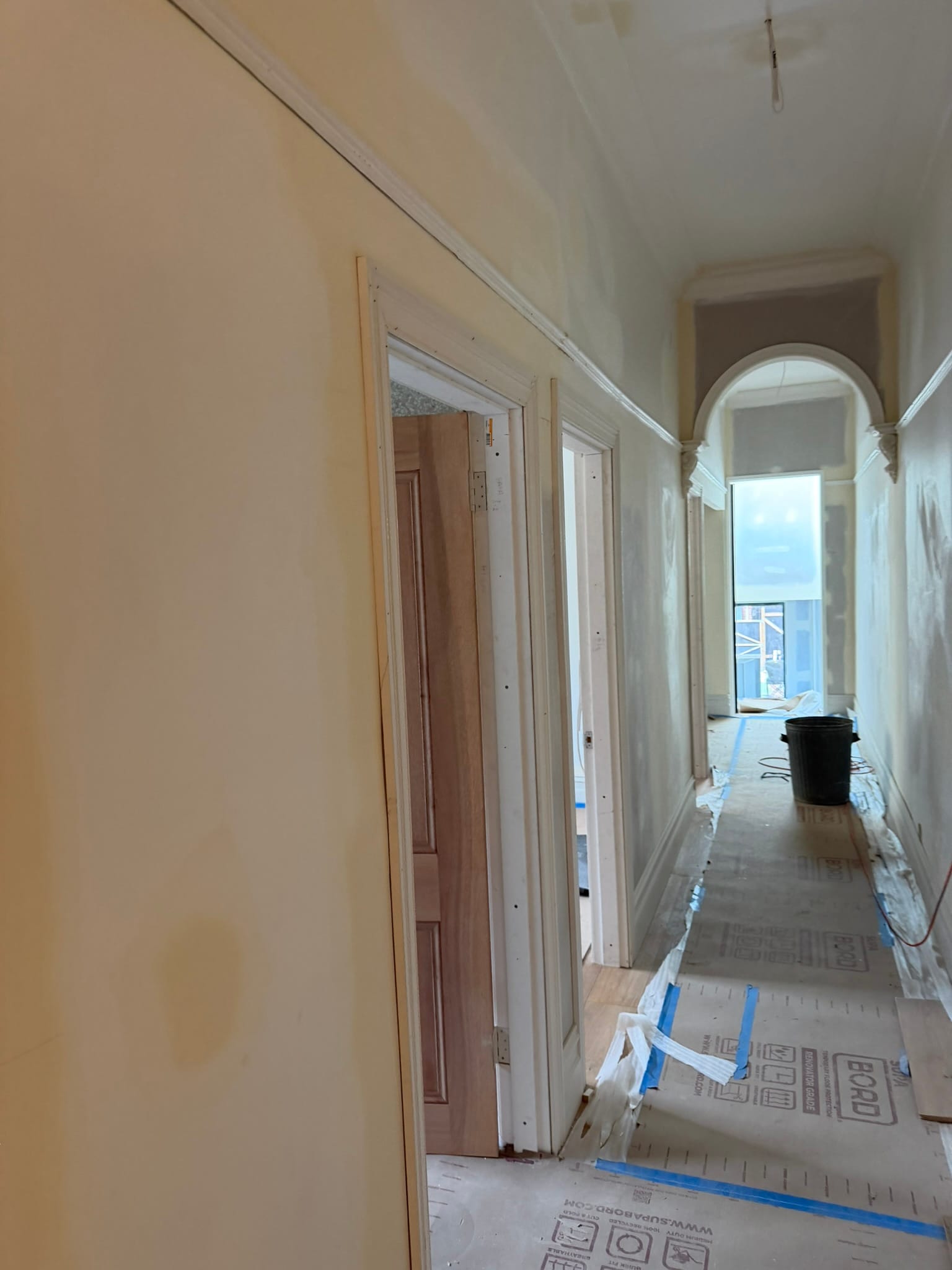 Internal fix completed in Flemington, including installation and hanging of internal doors, skirting, and architraves, delivered with a clean finish and ready for final painting and handover.
